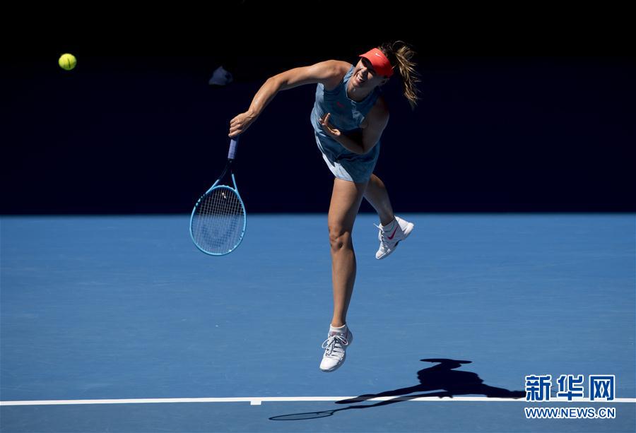 1月14日,俄羅斯選手莎拉波娃在比賽中發球。 當日,在2019年澳大利亞網球公開賽女子單打首輪比賽中,俄羅斯選手莎拉波娃以2比0戰勝英國選手達特,順利晉級。 新華社記者呂小煒攝