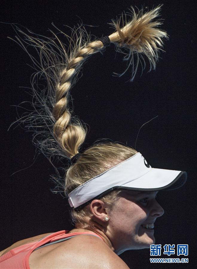 1月14日,英國選手達特在比賽中回球。 當日,在2019年澳大利亞網球公開賽女子單打首輪比賽中,俄羅斯選手莎拉波娃以2比0戰勝英國選手達特,順利晉級。 新華社記者呂小煒攝