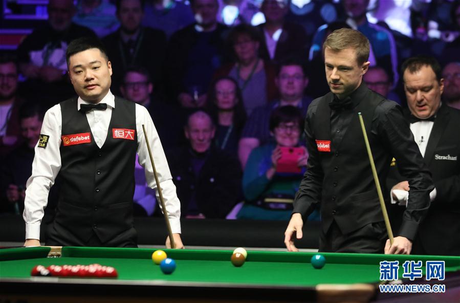 1月14日,丁俊暉(左)與利索斯基在比賽中。 當(dāng)日,在倫敦舉行的2019世界斯諾克大師賽首輪比賽中,中國選手丁俊暉以6比1戰(zhàn)勝英國選手利索斯基,晉級下一輪。 (伊薩貝爾·因凡蒂斯攝)