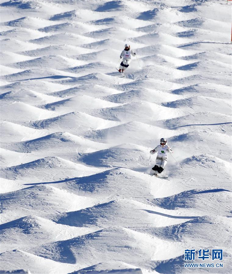 這是運動員在張家口市崇禮區太舞滑雪場參加自由式滑雪雪上技巧比賽(2018年12月14日攝)。 新華社記者楊世堯攝