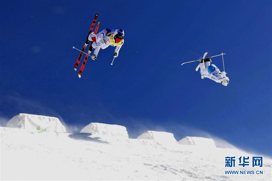 這是運動員在張家口市崇禮區太舞滑雪場參加自由式滑雪雪上技巧世界杯比賽(2018年12月16日攝)。 新華社記者楊世堯攝