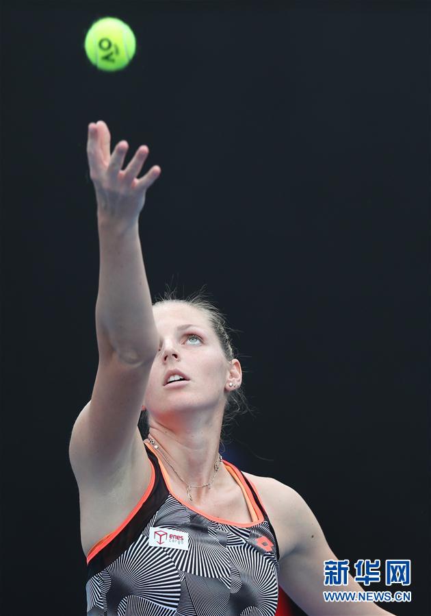 1月17日,捷克選手普利斯科娃在比賽中發球。 當日,在2019澳大利亞網球公開賽女單次輪比賽中,中國選手張帥以2比0戰勝捷克選手普利斯科娃,晉級下一輪。 新華社記者白雪飛攝