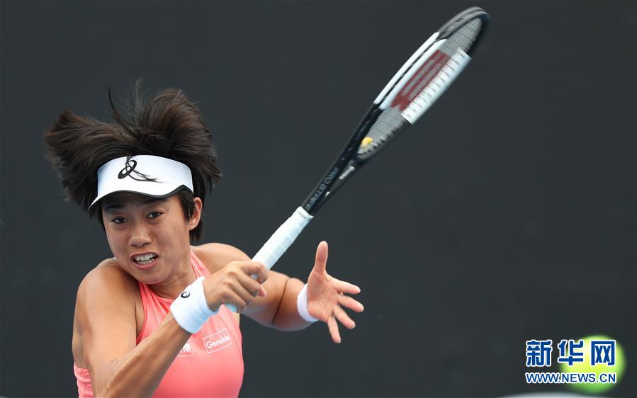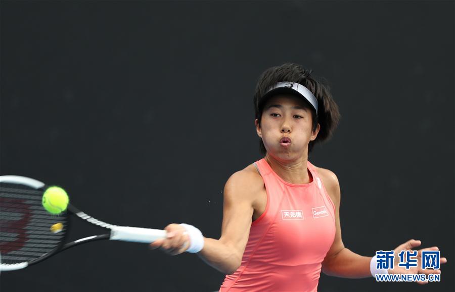 1月17日,張帥在比賽中回球。 當日,在2019澳大利亞網球公開賽女單次輪比賽中,中國選手張帥以2比0戰勝捷克選手普利斯科娃,晉級下一輪。 新華社記者白雪飛攝