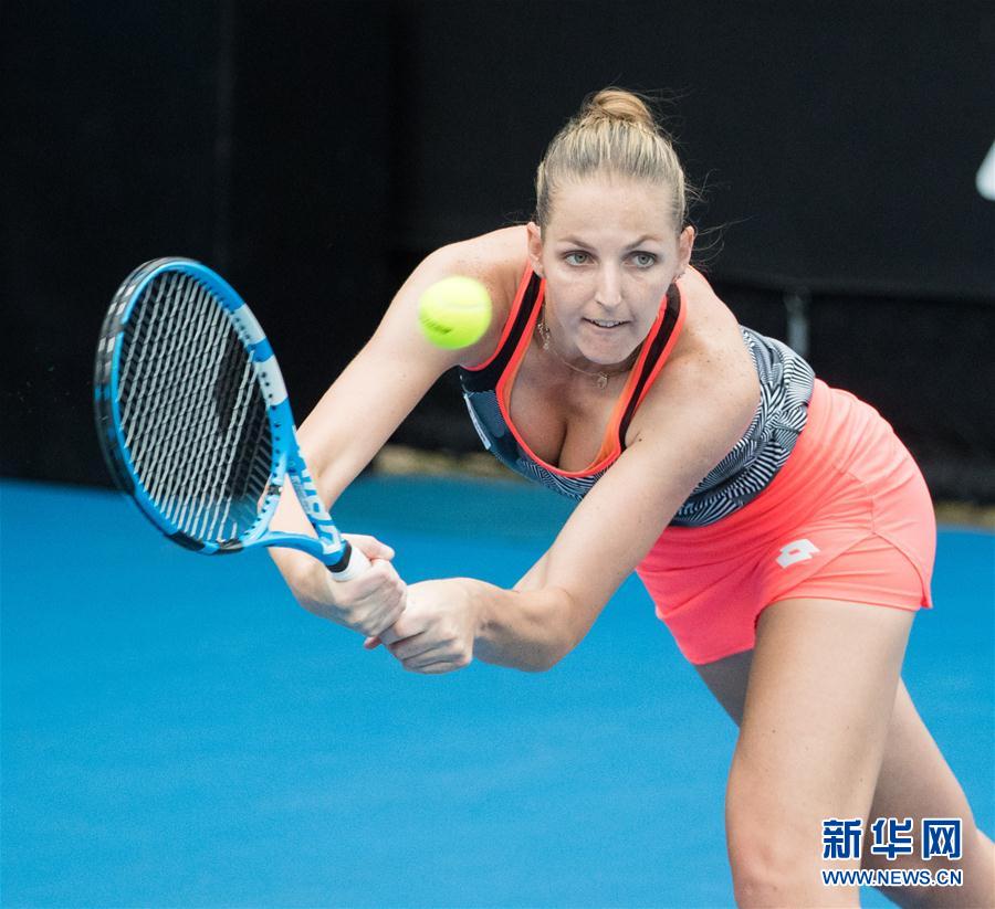 1月17日,普利斯科娃在比賽中回球。 當日,在2019澳大利亞網球公開賽女單次輪比賽中,中國選手張帥以2比0戰勝捷克選手普利斯科娃,晉級下一輪。 新華社發(胡涇辰攝)