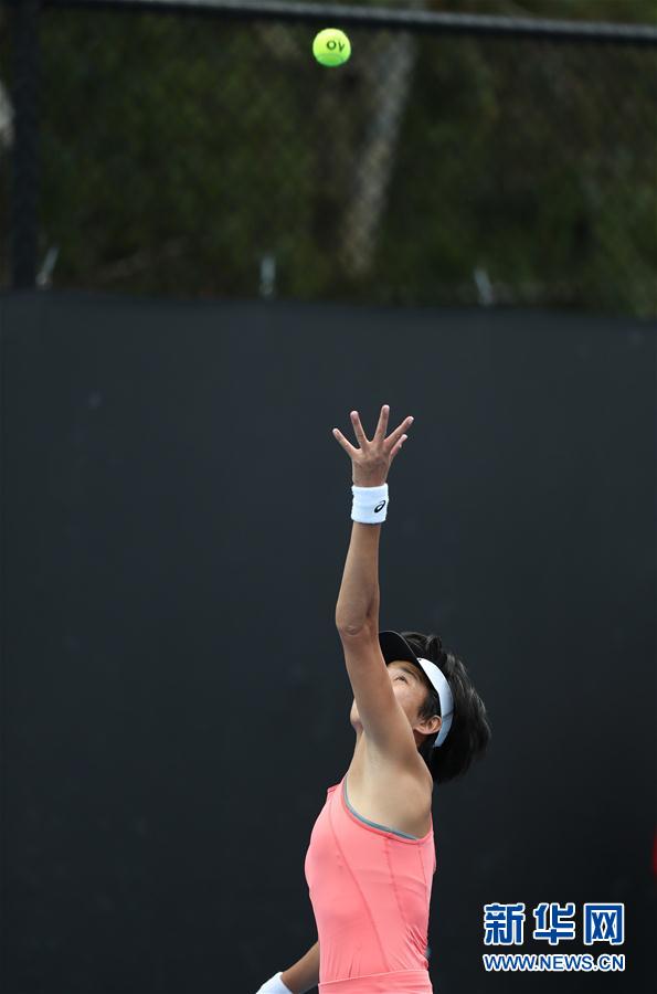 1月17日,張帥在比賽中發球。 當日,在2019澳大利亞網球公開賽女單次輪比賽中,中國選手張帥以2比0戰勝捷克選手普利斯科娃,晉級下一輪。 新華社記者白雪飛攝