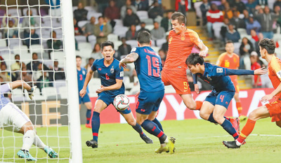 本報阿聯酋艾因1月20日電 (記者劉碩陽)當地時間20日晚,在阿聯酋艾因進行的2019年亞洲杯1/8決賽中,中國隊以2∶1戰勝泰國隊,晉級八強。泰國隊的素帕差在第三十一分鐘打入一球,泰國隊以1∶0領先。下半場,中國隊先后派上肖智和金敬道加強進攻。第六十七分鐘,肖智門前補射為中國隊扳平比分。第七十分鐘,中國隊獲得點球機會,郜林穩穩罰進,中國隊就此鎖定勝局。