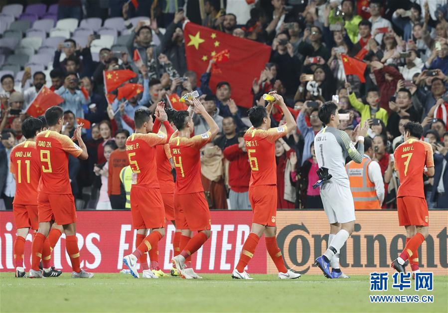 1月20日,中國隊球員在比賽后向球迷致意。 當日,在阿聯酋艾因舉行的2019年亞洲杯足球賽八分之一決賽中,中國隊以2比1戰勝泰國隊,晉級八強。 新華社記者曹燦攝