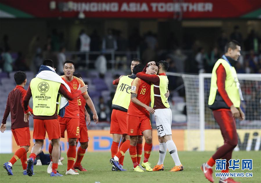 1月20日,中國隊球員賽后慶祝勝利。 當日,在阿聯酋艾因舉行的2019年亞洲杯足球賽八分之一決賽中,中國隊以2比1戰勝泰國隊,晉級八強。 新華社記者丁旭攝
