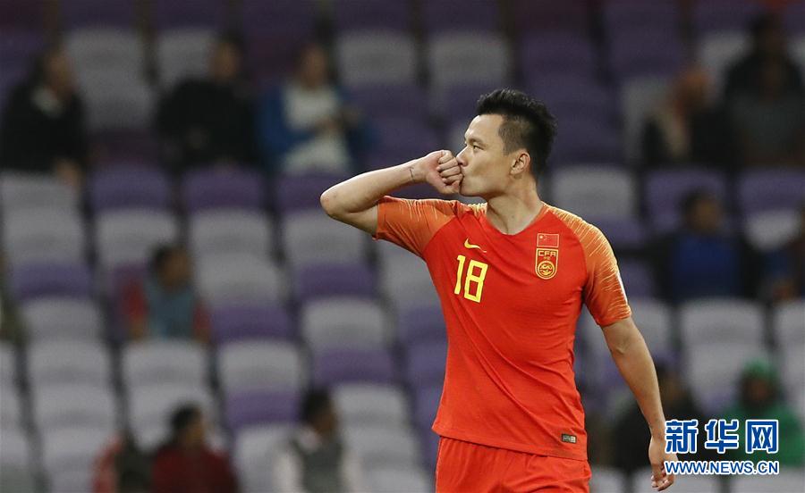 新華社照片,艾因(阿聯酋),2019年1月21日 (亞洲杯)(13)足球——中國隊晉級八強 1月20日,中國隊球員郜林主罰點球命中后慶祝。 當日,在阿聯酋艾因舉行的2019年亞洲杯足球賽八分之一決賽中,中國隊以2比1戰勝泰國隊,晉級八強。 新華社記者丁旭攝