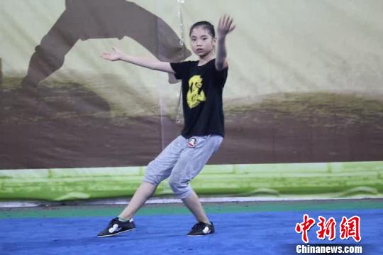周憶雯在練習武術動作。 鐘欣 攝