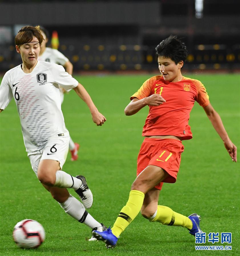 1月20日,中國隊球員王珊珊(右一)在比賽中帶球突破。 當日,在廣東省梅州市五華縣舉行的國際女足錦標賽決賽中,中國隊以1比0戰勝韓國隊,獲得冠軍。 新華社記者鄧華攝