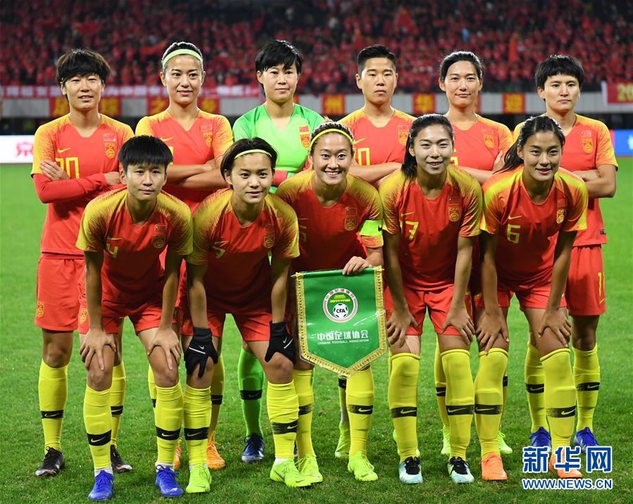 1月20日,中國隊首發球員在賽前合影。 當日,在廣東省梅州市五華縣舉行的國際女足錦標賽決賽中,中國隊以1比0戰勝韓國隊,獲得冠軍。 新華社記者鄧華攝