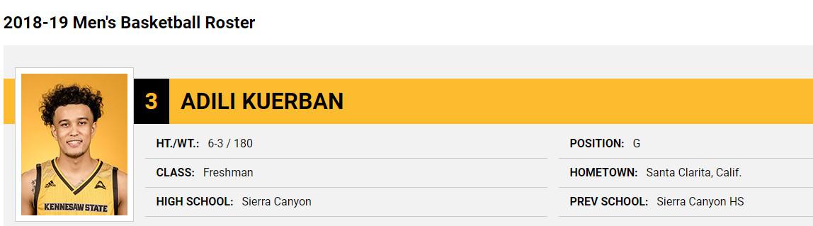 本賽季在NCAA一級的肯尼索州立大學中,阿迪力-庫爾班一共只得到5分鐘的出場時間,個人表現(xiàn)幾乎可以忽略不計,他的年齡和身體條件也難有潛力可言。雖然職業(yè)前景并不明朗,但他的個人發(fā)展之路,為那些打不上CBA的中國球員指明了新的方向。