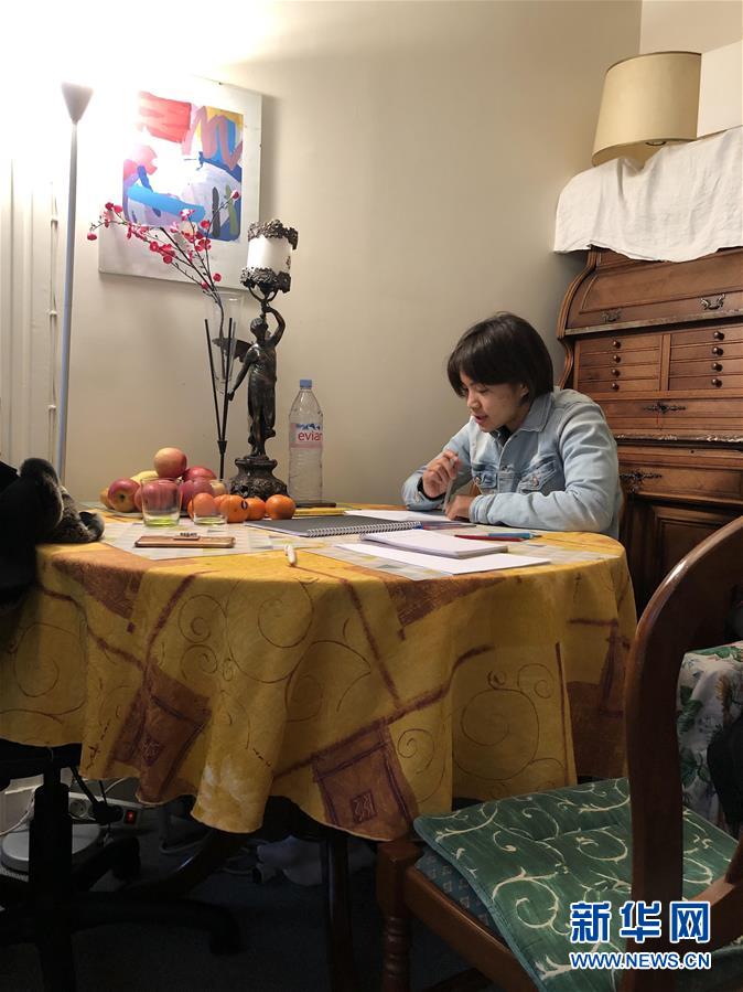 圖為2019年1月11日,王霜在法國巴黎的友人家中學(xué)習(xí)英文。 新華社記者陳益宸攝