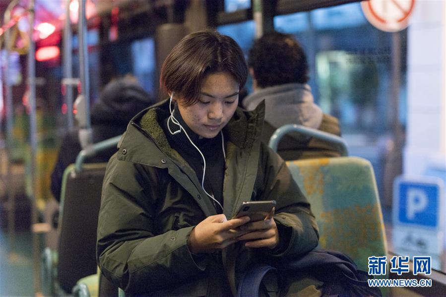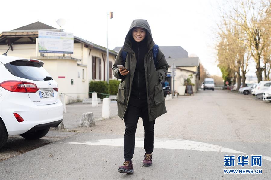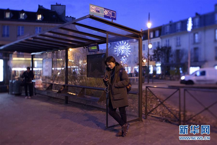 圖為2019年1月9日,王霜在法國圣日耳曼昂萊的一處公交站等車準備參加早晨的日常訓(xùn)練。 新華社記者陳益宸攝