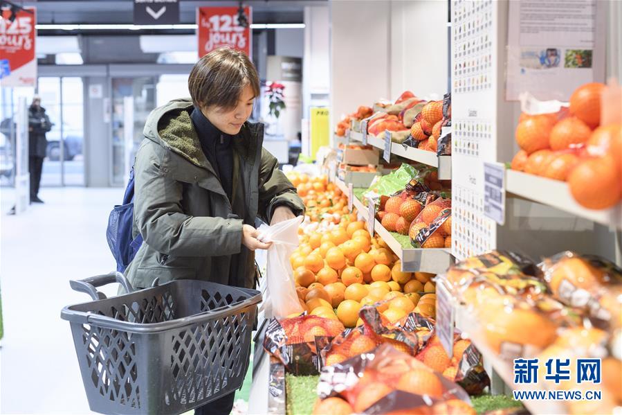 圖為2019年1月9日,王霜在法國圣日耳曼昂萊的一處超市內(nèi)選購水果。 新華社記者陳益宸攝