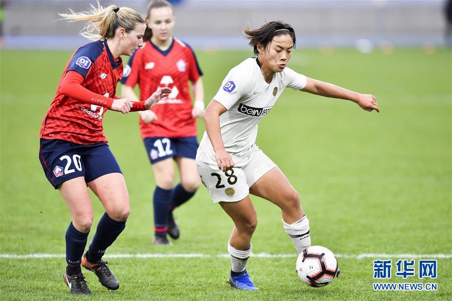 圖為2019年1月13日,王霜在法國里爾參加巴黎圣日耳曼對里爾的比賽。 新華社記者陳益宸攝
