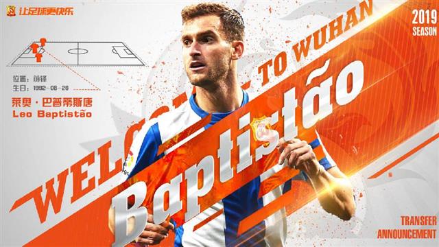 湖北日報訊(記者蔡毅)繼1月30日官宣中超廣州恒大中后衛韓鵬飛后,武漢卓爾隊加快了引援步伐。北京時間2月1日凌晨,武漢俱樂部對外宣布,西甲勁旅西班牙人隊前鋒萊奧納多·卡里奧·巴普蒂斯唐,正式加盟球隊。這也意味著,巴普蒂斯唐成為繼拉斐爾和埃弗拉之后,武漢隊本賽季簽下的第三名外援。