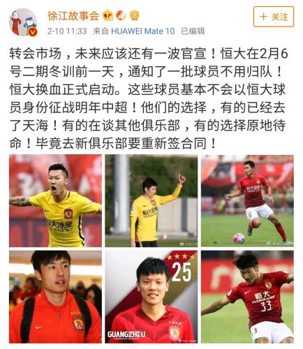 此外還有爆料稱,包括徐新、張文釗、王上源、鄭龍、鄒正、榮昊等在內的球員都將被恒大的清洗。中超這一冬窗期的內援流動堪稱“乾坤大挪移”,勢必會對新賽季的聯賽格局產生巨大影響。
