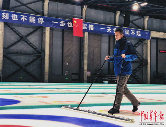 初學(xué)制冰正值北京盛夏,室外氣溫30多攝氏度,劉博強(qiáng)第一次踏進(jìn)首都體育館冰場,后背掛的汗“嗖”一下沒了。學(xué)習(xí)制冰、掃冰的3個(gè)月,感冒是常態(tài),即便至今,他的防寒服里仍揣著藿香正氣水。