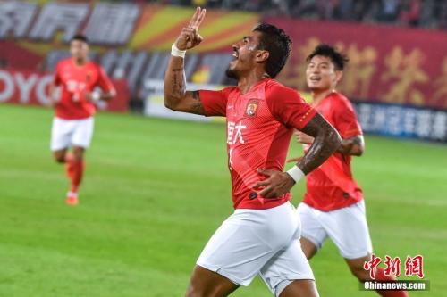 資料圖:廣州恒大隊(duì)球員保利尼奧(中)。中新社記者 陳驥旻 攝
