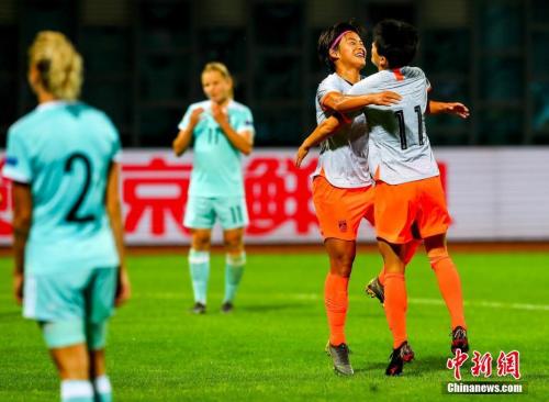 中國隊7號王霜與11號王珊珊擁抱慶祝。(資料圖)中新社記者 張暢 攝