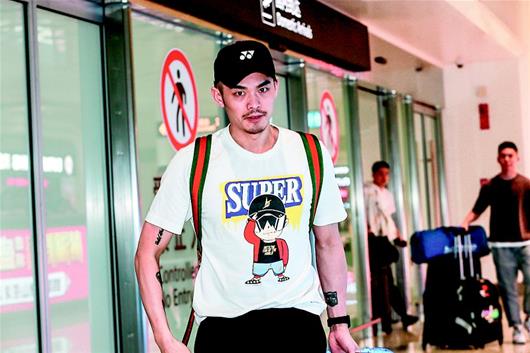 當晚約7點,中國羽毛球隊從北京乘坐CA8208航班抵達武漢。在男單組主教練夏煊澤打頭陣走出接機口后,國羽的教練和隊員們陸續出現。而直到頭戴黑色棒球帽,身穿印著自己卡通形象白色T恤的林丹大步流星走出來,望眼欲穿的“丹粉”們立馬熱鬧起來,這也讓不少等在出口處的人舉起手機對著林丹狂拍。