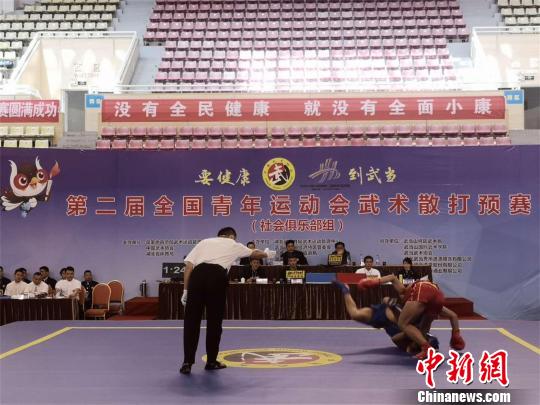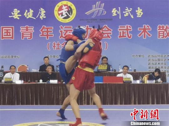 中新網十堰5月8日電 (郭軍)第二屆全國青年運動會武術散打預賽(社會俱樂部組)8日在武當山開賽,來自北京、天津、吉林、黑龍江、浙江、福建、廣東、湖南、重慶、新疆等全國24個省(市、區)的41支運動隊共308人參賽。