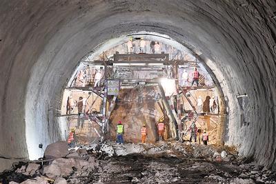 圖為延崇高速河北段松山特長隧道,工人在鉆孔作業(yè)。通訊員 李英軍攝