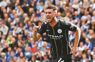 曼城隊球員拉波爾特慶祝進球。@新華社