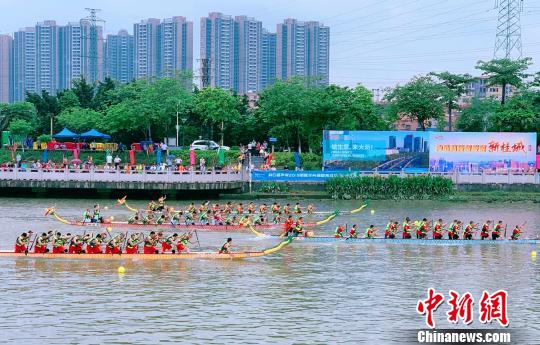 2019年珠海市斗門龍舟文化節日前在斗門區黃楊河畔舉辦。來自粵港澳大灣區城市群的香港、澳門和珠三角九市的49支龍舟隊伍、1500多名龍舟健兒,共同為現場數萬名觀眾奉獻了競技盛況。(完)