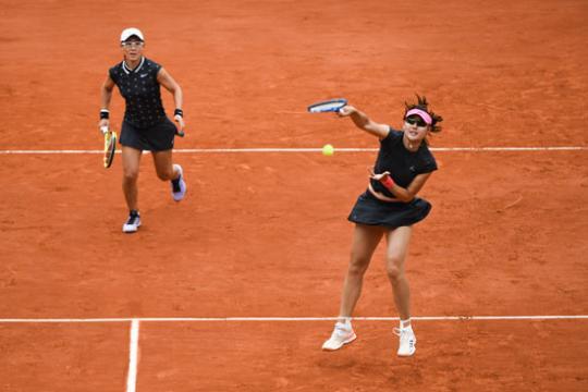 6月9日,中國選手段瑩瑩(右)與鄭賽賽合作,獲得2019法網(wǎng)女雙亞軍。視覺中國供圖