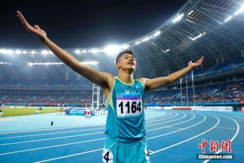 資料圖:謝震業(yè)是中國男子200米領(lǐng)軍人物,如今又成了男子100米頂梁柱之一。新社記者 李卿 攝