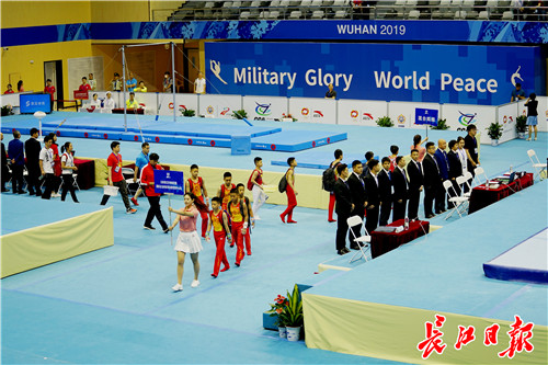 參賽選手進(jìn)入?yún)①悎?chǎng) 武漢軍運(yùn)會(huì)體操項(xiàng)目競(jìng)賽委員會(huì)供圖