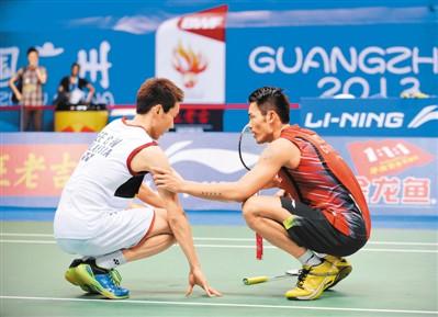 2013年廣州世錦賽決賽,李宗偉因脫水導(dǎo)致體力透支,不得不放棄比賽。作為勝者的林丹并未大肆慶祝,而是與工作人員一同將李宗偉抬上擔(dān)架。事后,李宗偉說,兩人的感情已經(jīng)超越了對手。