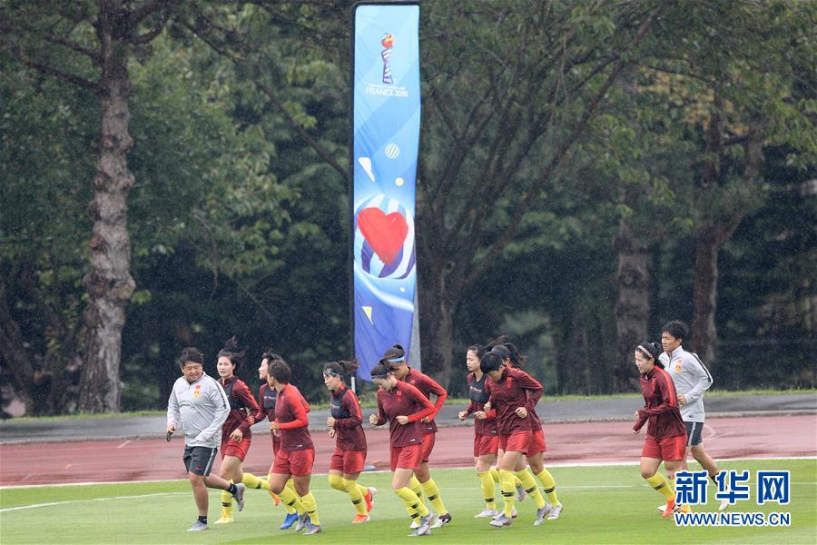 6月19日,中國隊球員在訓練前熱身。 當日,中國女足隊員在法國勒阿弗爾訓練,備戰2019年國際足聯女足世界杯16強賽。 新華社記者徐子鑒攝