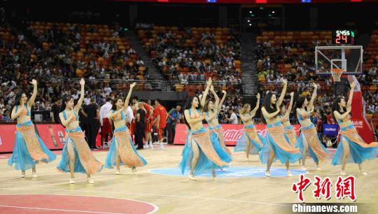 中國男籃隊員進行賽前熱身。 胡耀杰 攝