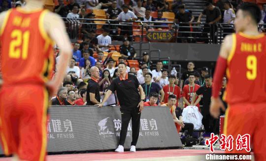 中國男籃主教練李楠在比賽中。 胡耀杰 攝