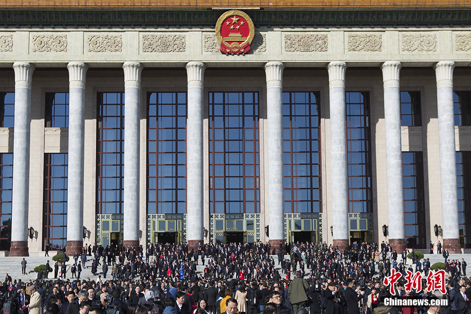 第十三屆全國人民代表大會第二次會議在圓滿完成各項議程后,3月15日在北京人民大會堂閉幕。圖為代表們會后走出會場。 中新社記者 王駿 攝