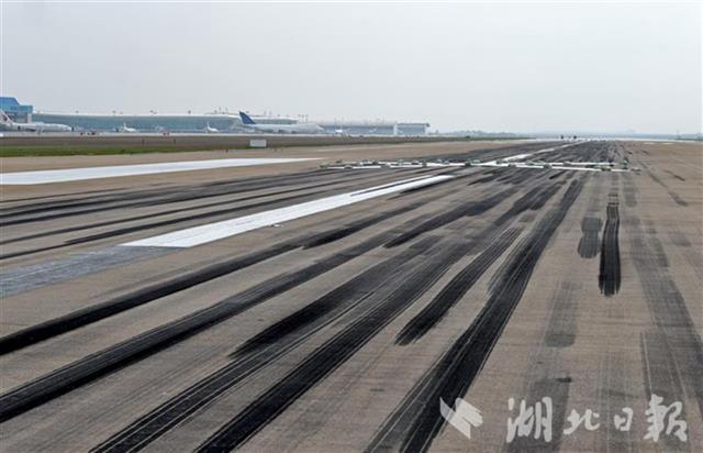 3月15日,跑道上飛機輪胎摩擦留下的膠印將被清除。