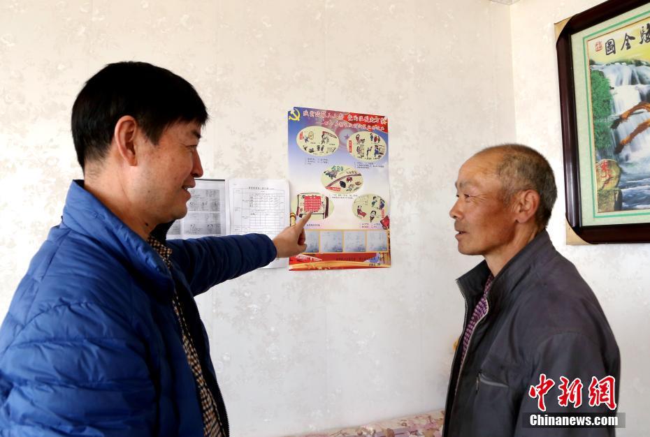 3月21日,原繼光來到村民家中通過印制出的漫畫宣傳冊向村民講解扶貧政策。青海省海東市互助土族自治縣東山村書記原繼光通過自己繪制的漫畫,為村民講解政府扶貧政策。據了解,原繼光手繪了近千張漫畫宣講扶貧政策、記錄扶貧工作,被村民親切的稱為“漫畫書記”。2017年底,東山村已脫貧摘帽。“漫畫書記”依然用漫畫的形式宣講政策鞏固脫貧成果。中新社記者 馬銘言 攝