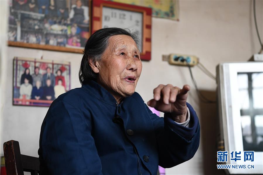 河北省唐縣淑呂村95歲村民葛貴多在講述70年前的場景(3月7日攝)。新華社記者牟宇攝