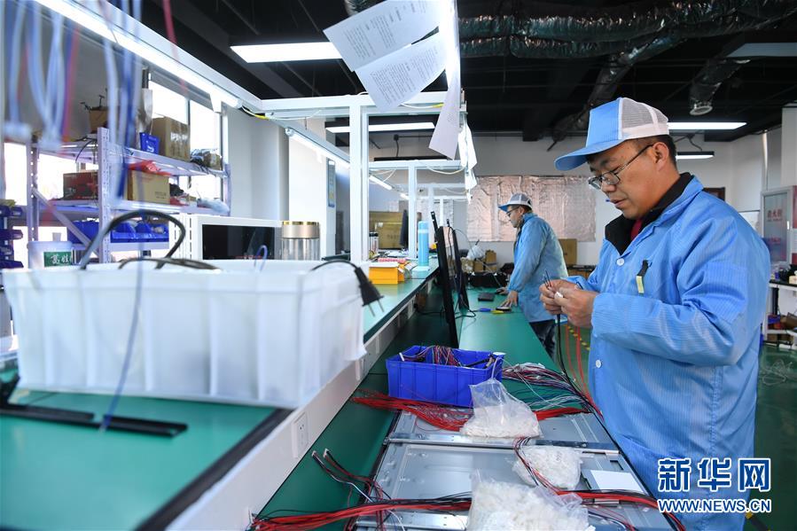 在保定涿州·中關村和谷創新產業園,范宏浩團隊的工作人員在組裝電子產品(3月12日攝)。 新華社記者牟宇攝