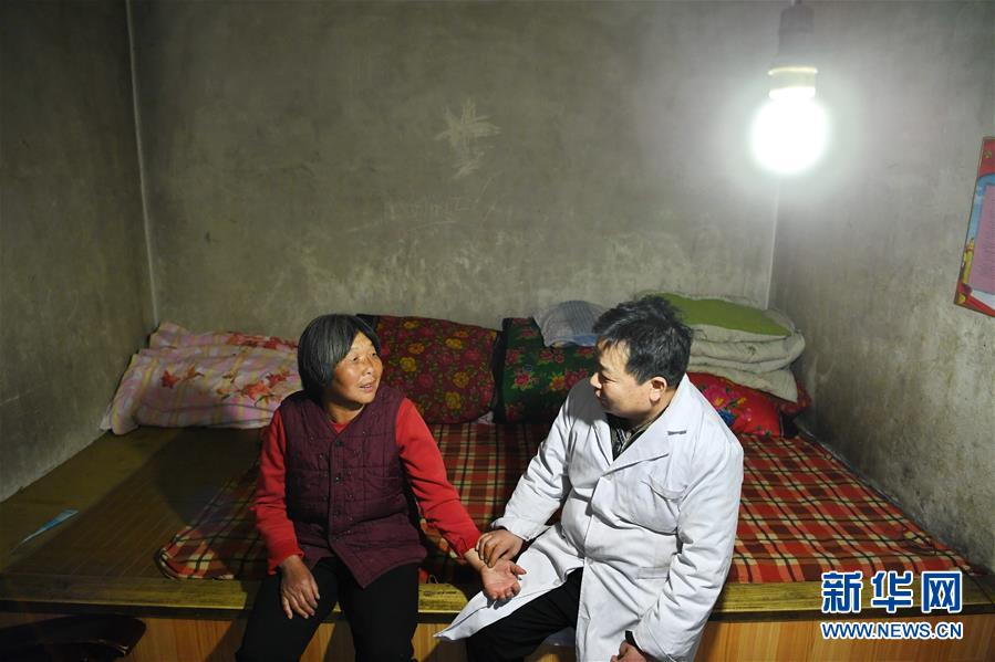 在河北省唐縣白合鎮上莊村,家庭簽約醫生李少達(右)在為村民閆愛琢把脈(3月13日攝)。 新華社記者牟宇攝