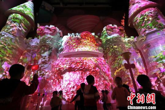 小朋友在Hello Kitty城堡燈光秀中狂歡。 張亨偉 攝