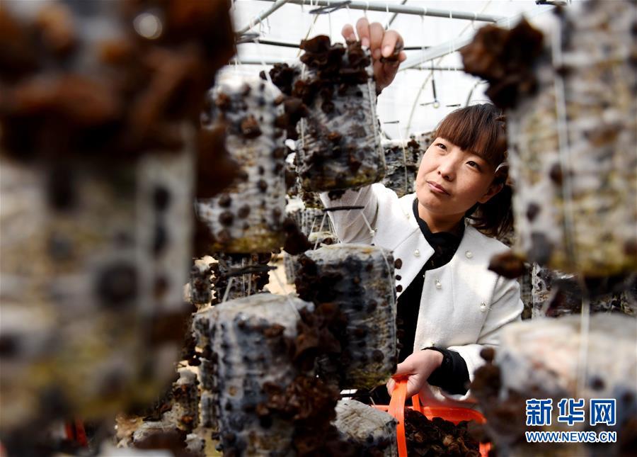 3月30日,隆堯縣隆堯鎮丘一村康圃家庭農場工人在采摘鮮木耳。新華社記者 朱旭東 攝