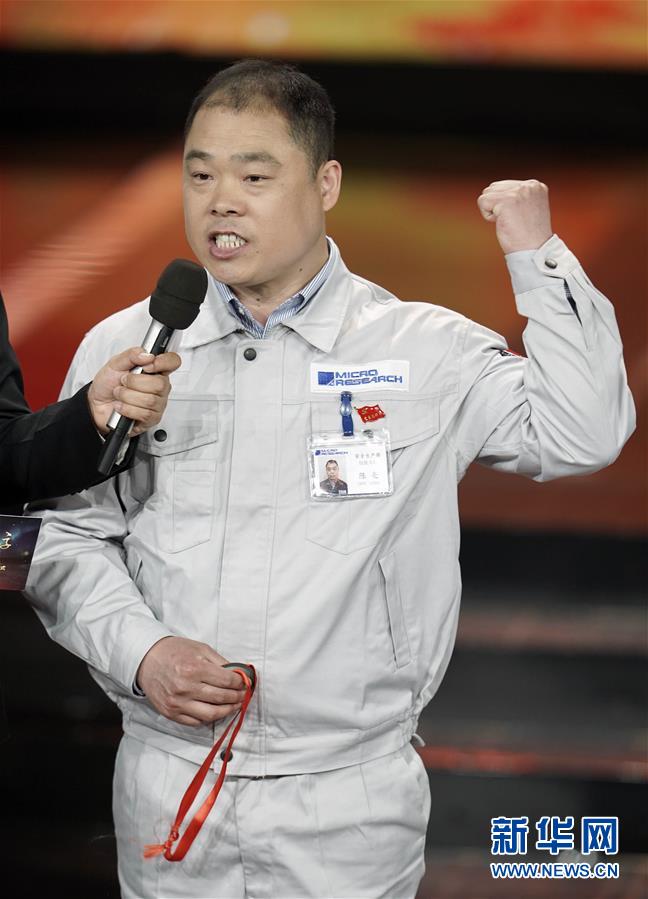 江蘇省無錫微研股份有限公司高級技師陳亮在“最美職工”發布儀式上(4月21日攝)。 新華社記者 才揚 攝