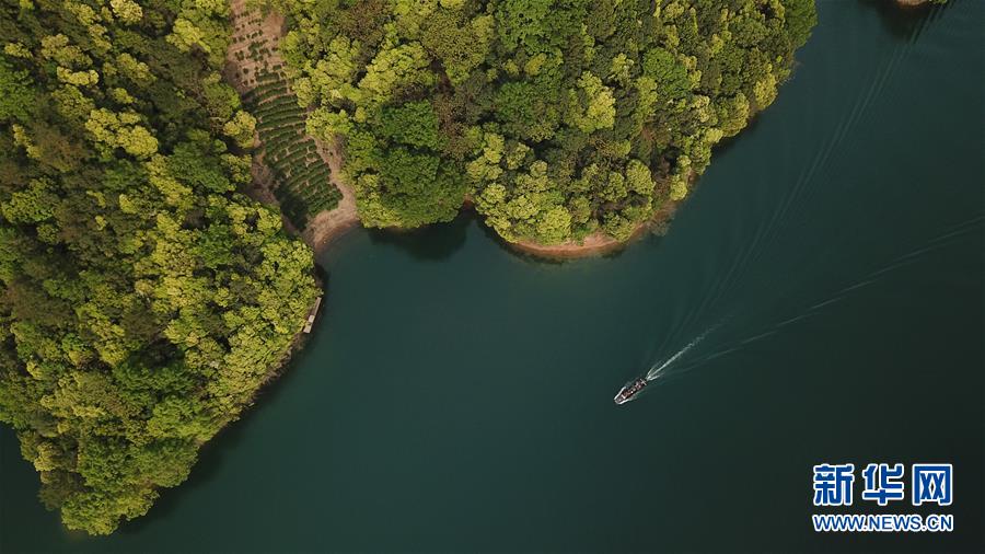 4月15日無人機拍攝的安徽黃山市太平湖風景區一景。新華社記者 張端 攝
