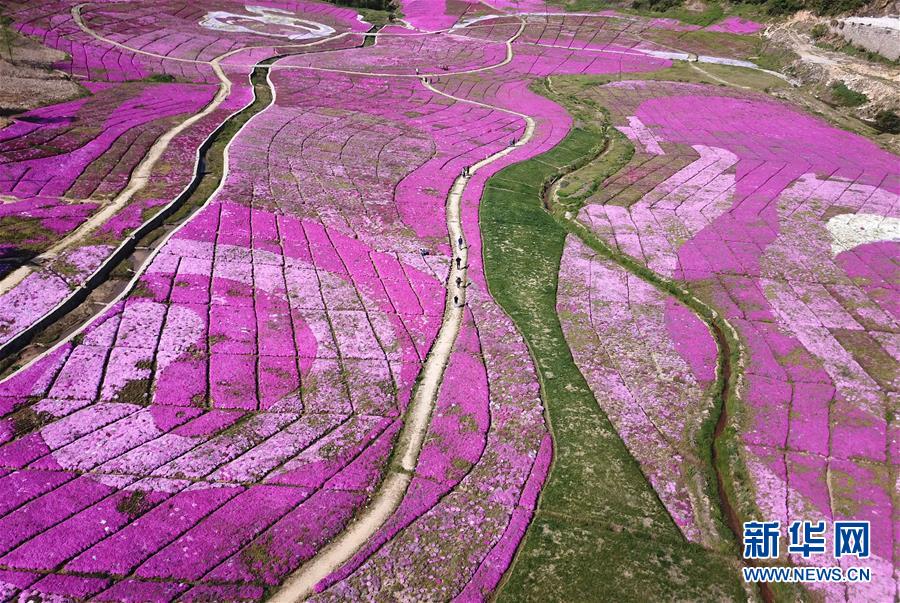 這是安徽省霍山縣太陽鄉船倉村的花海(4月19日無人機拍攝)。新華社記者 劉軍喜 攝