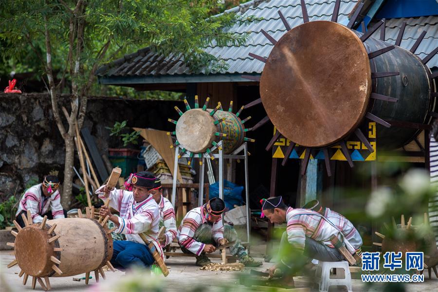 6月14日,合作社的村民在制作基諾大鼓。 在云南省西雙版納傣族自治州景洪市基諾山基諾族鄉(xiāng)巴坡村,省級非物質(zhì)文化遺產(chǎn)傳承人白臘先帶領(lǐng)村民成立“制作大鼓及手工藝品專業(yè)合作社”,專門傳授基諾大鼓制作工藝,讓這門工藝得以傳承。 新華社記者胡超攝
